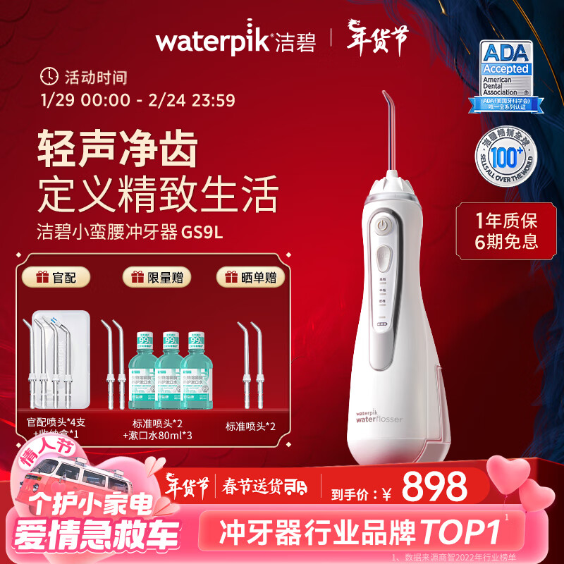 洁碧(Waterpik)冲牙器便携式电动洗牙器水牙线家用立式预防牙结石全身水洗 小蛮腰GS9L 年货节情人节礼物价格:1048.00元!