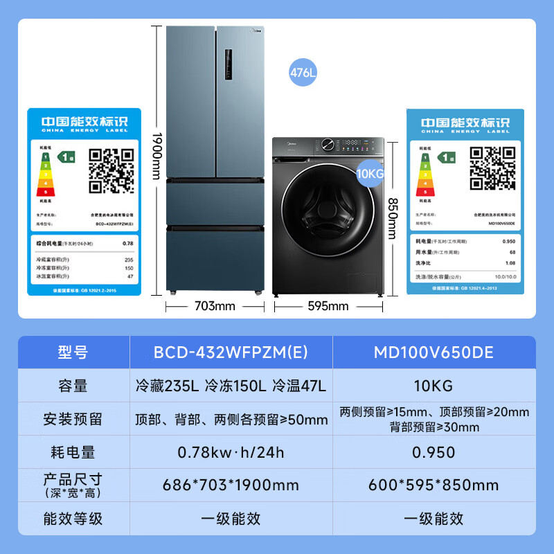 美的BCD-432WFPZM(E)+MD100V650DE配置参数: