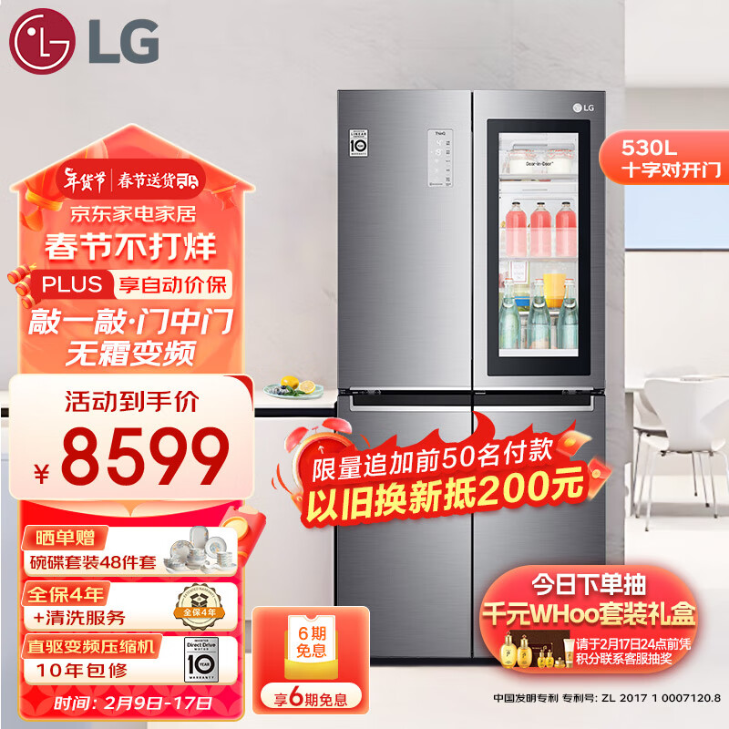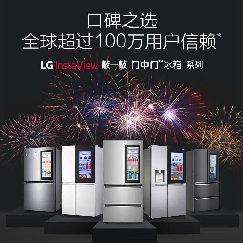 LG敲一敲系列 530升超大容量十字对开门 门中门冰箱 金属面板 无霜变频 制冰盒 以旧换新 F521S71价格:8599.00元!