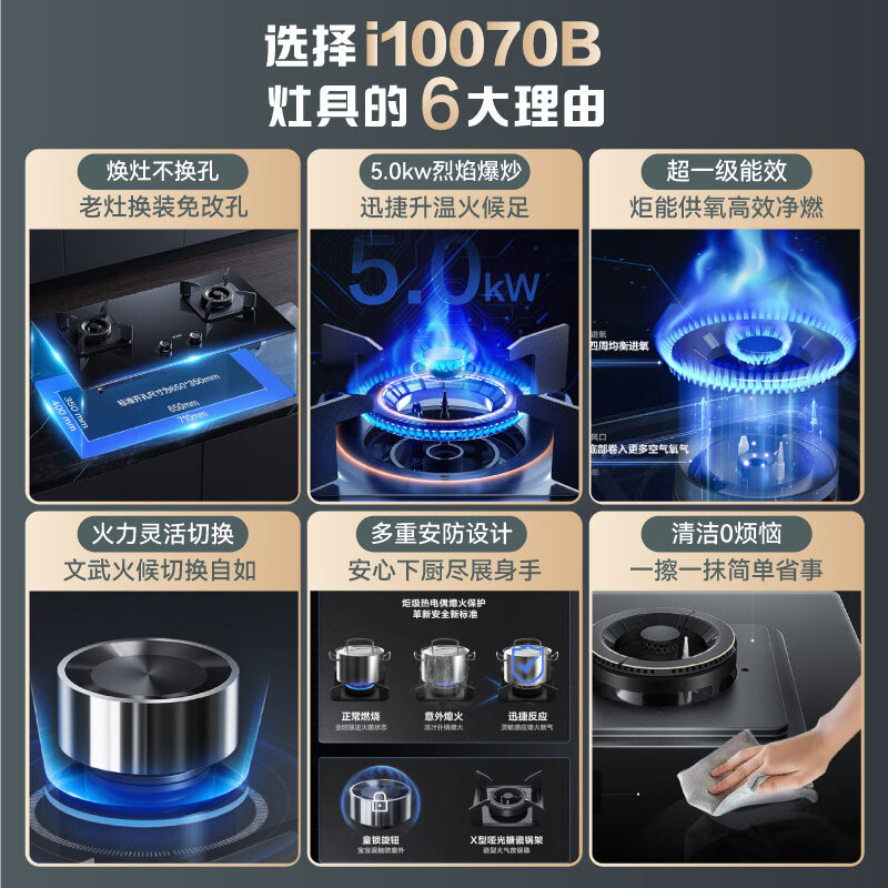 华帝(VATTI)燃气灶天然气双灶具华帝官方5.0kW多档火力台嵌两用一级能效可调节底盘安装开孔尺寸易清洁i10070B 天然气价格:1699.00元!