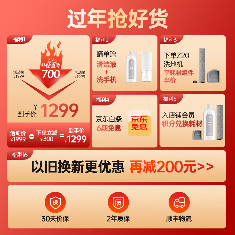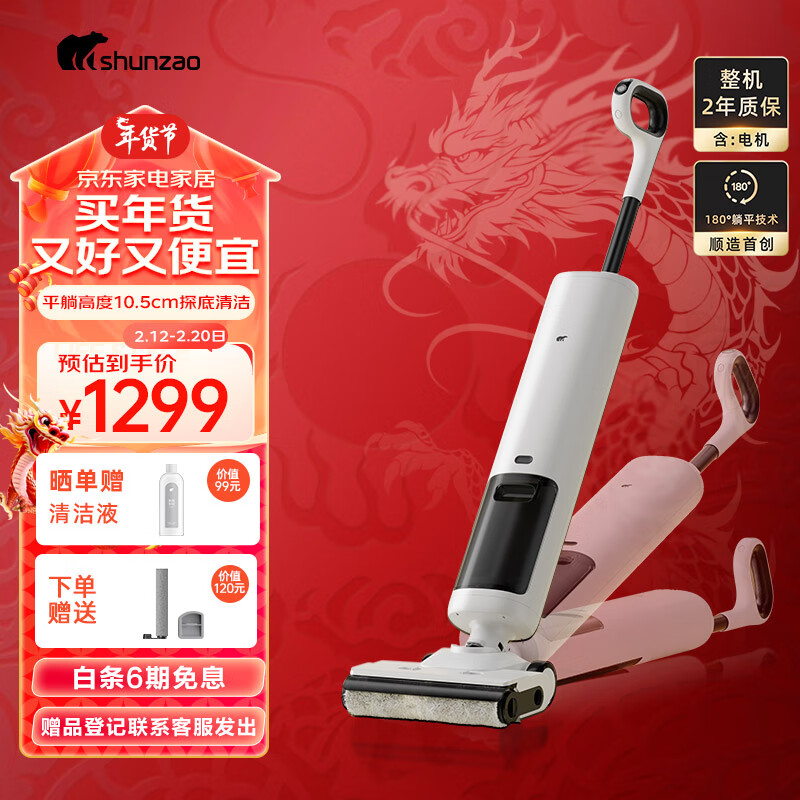 顺造洗地机180度平躺Z20 平拖洗地机洗拖一体自动清洗家用 除菌吸拖一体手持吸尘洗地机价格:1290.00元!