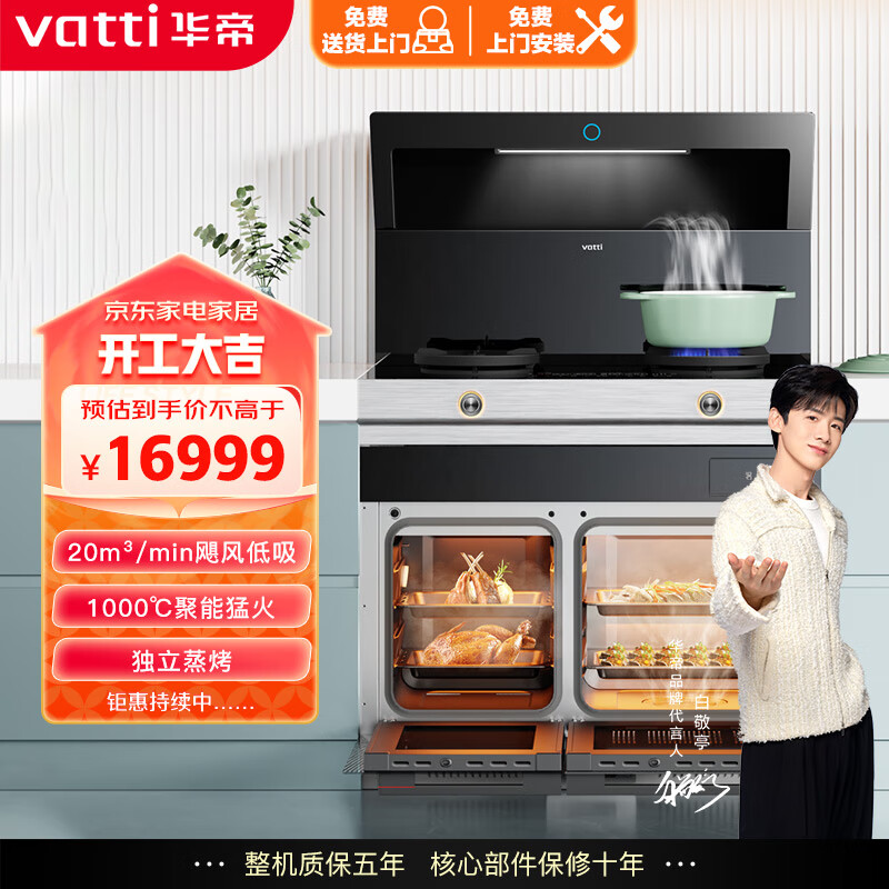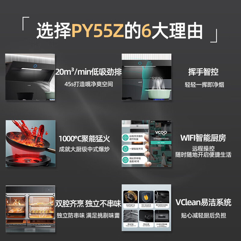 华帝(VATTI)集成灶蒸烤炸一体集成灶 家用蒸烤独立一体机 集成灶一体式 挥手智控 智能APP联控 PY55Z天然气价格:16999.00元!