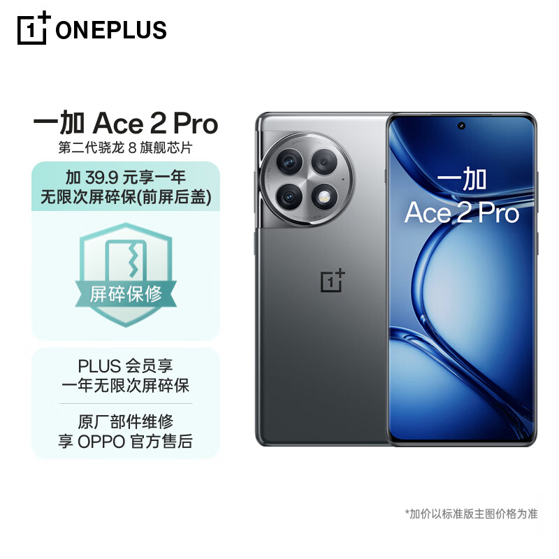 OPPO 一加 Ace 2 Pro 12GB+256GB 钛空灰 高通第二代骁龙 8 旗舰芯片 5G游戏手机【一年无限次屏碎保套装】价格:3038.90元!