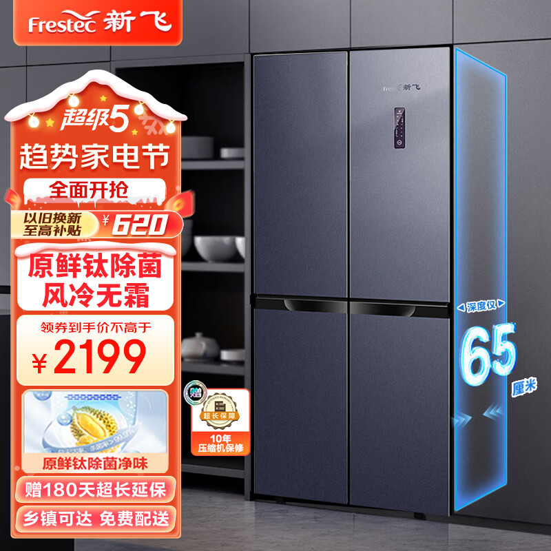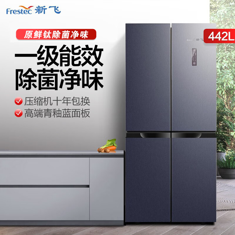 新飞(Frestec)442升原鲜钛除菌净味十字门超薄可嵌入冰箱一级变频电冰箱BCD-442WK8CT/L价格:2399.00元!