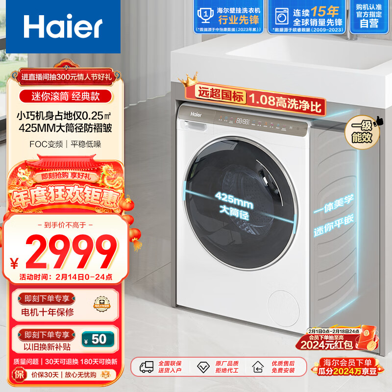 海尔(Haier)迷你滚筒洗衣机全自动 3.5KG超薄平嵌 儿童洗衣机婴儿洗衣机小型内衣洗95℃高温除菌XQGM35-B80CU1价格:2999.00元!
