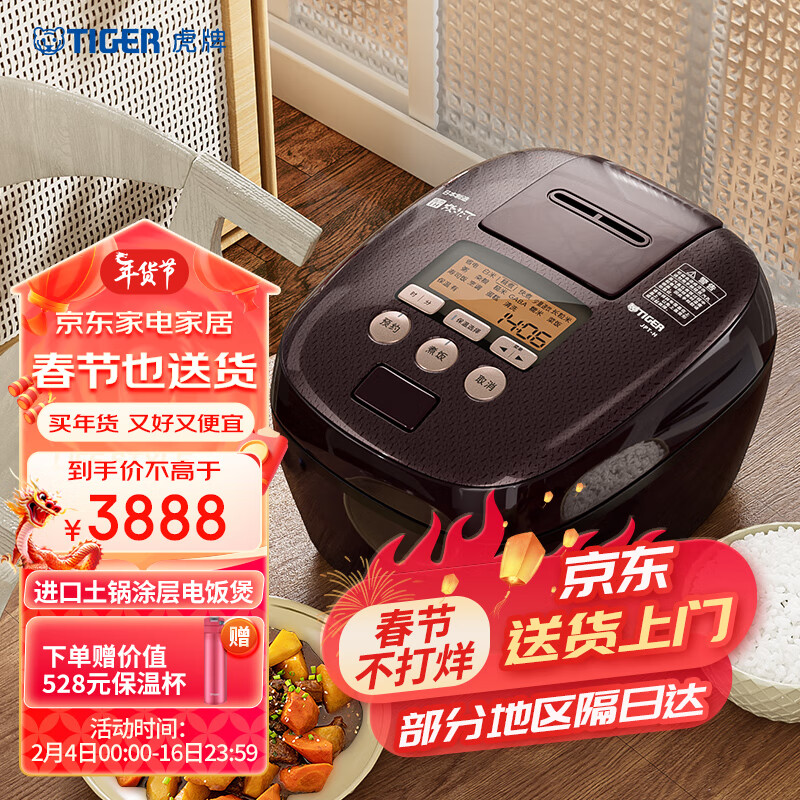 虎牌(Tiger)电饭煲 Pro 智能IH日本进口土锅涂层3L电饭煲2-6人JPT-H10C深棕色 年货可送长辈价格:3888.00元!