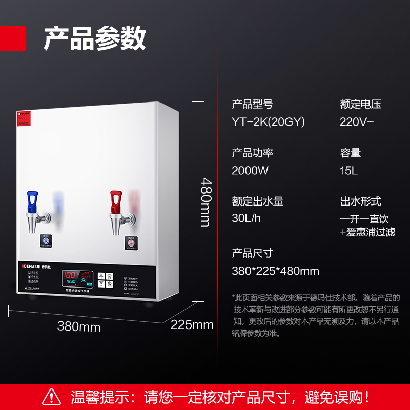 德玛仕(DEMASHI)壁挂式开水器商用 挂墙开水机 步进式直饮机 电热烧水机器 办公室壁挂台式两用YT-2K(20GY)价格:2299.00元!