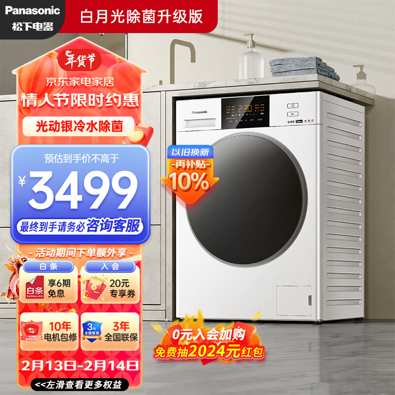 松下(Panasonic)滚筒洗衣机全自动超薄全嵌【白月光除菌升级版】10公斤 1.1洗净比 光动银 泡沫净祛渍XQG100-3E1AK价格:4099.00元!