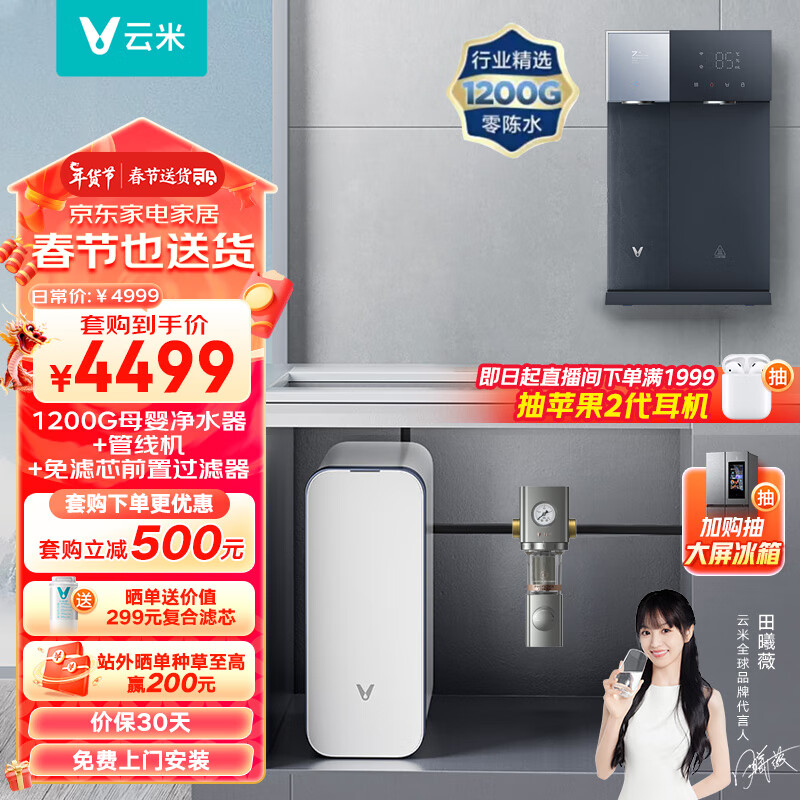 云米(VIOMI)Super Y 1200G全屋净水套装净水器+冷热管线机Master 3+前置过滤器VF4-A三件套家用净水器净水机价格:4999.00元!