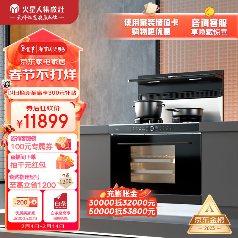 火星人集成灶ET50 Pro集成灶一体式 蒸烤一体 家用蒸烤箱 液化气价格:11999.00元!