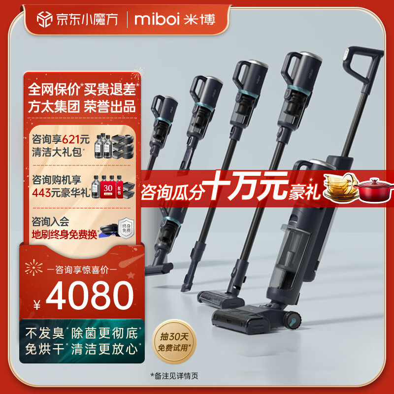米博(Miboi)无滚布洗地机Q7Pro/Q7Plus家用洗拖吸一体拖地机智能除螨除菌自清洁扫地吸尘机器人方太集团出品 Q7Pro老爸评测-咨询有礼价格:4280.00元!