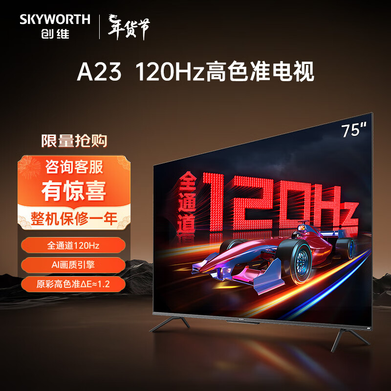 创维电视75A23 75英寸电视机全通道120Hz 3+32G4K超高清护眼声控屏智能液晶价格:3399.00元!