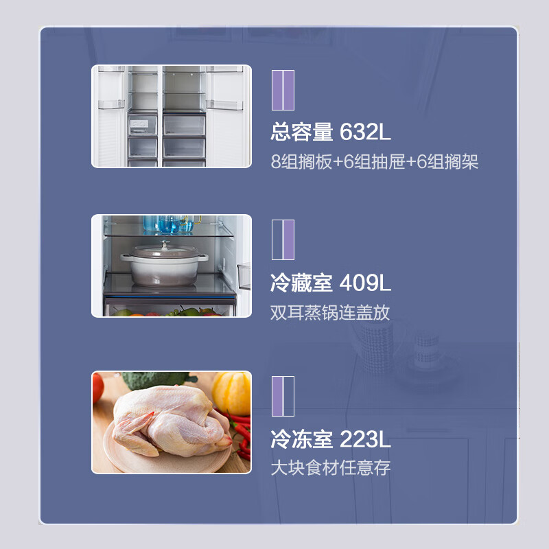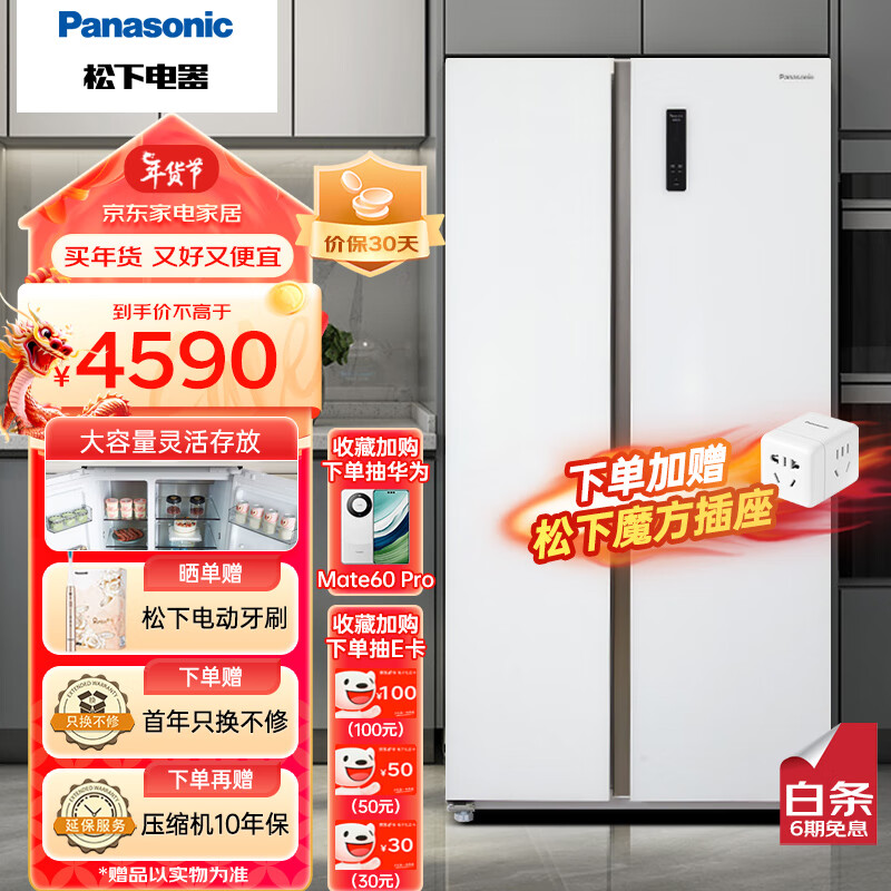 松下(Panasonic)冰箱632升双开门冰箱90°悬停风冷无霜磨砂玻璃面板白色优选冰箱NR-TB63GPB-W【B651WG款】价格:4990.00元!