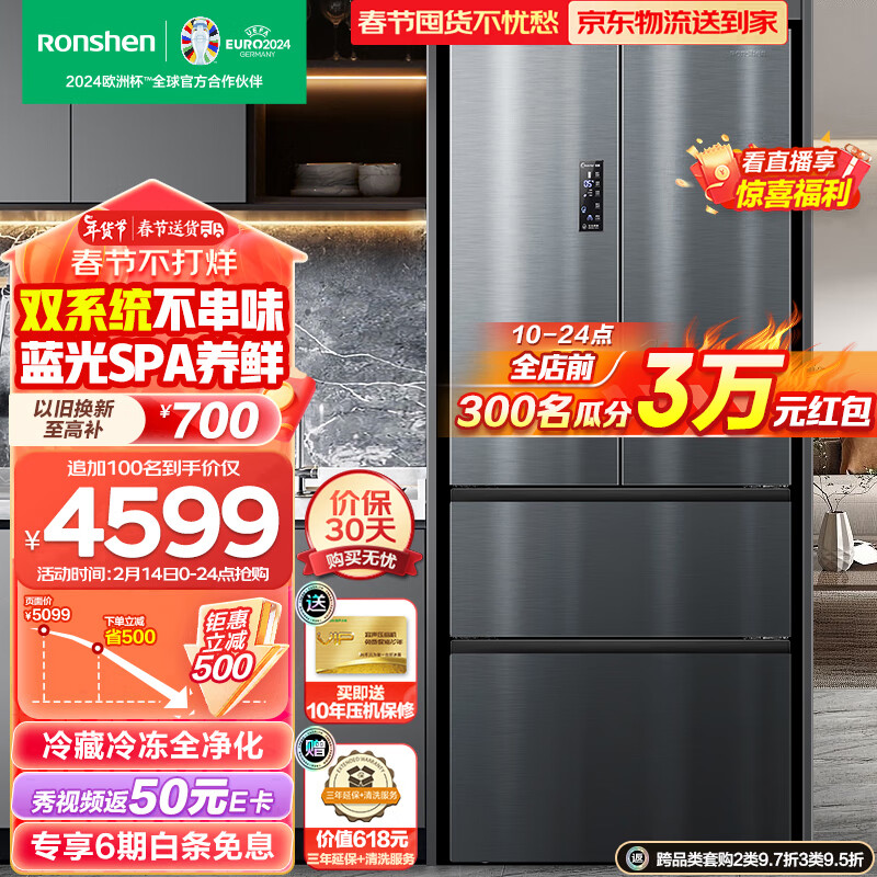 容声(Ronshen)蓝光养鲜526升变频一级能效法式多门四开门冰箱嵌入式家用无霜除菌BCD-526WD13MPA双循环大容量价格:5099.00元!