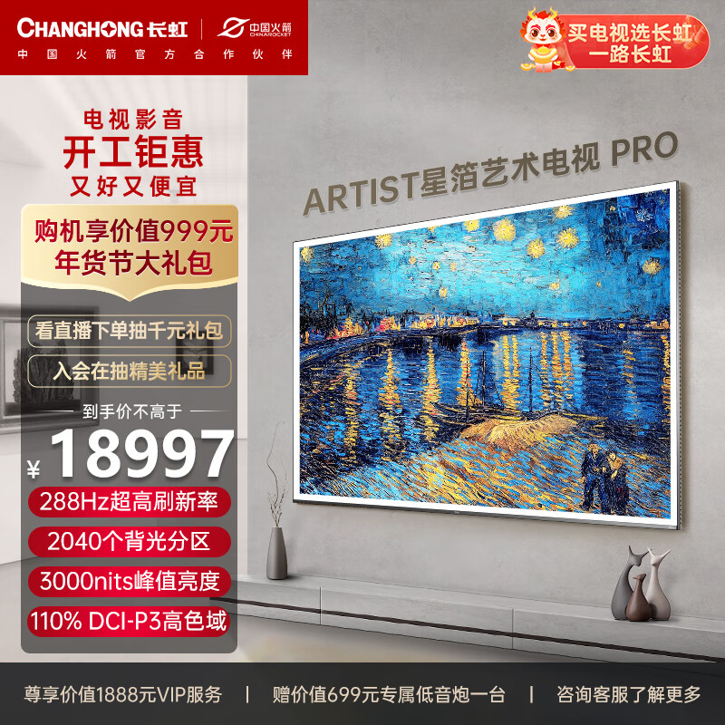 长虹电视75Q10ART PRO 75英寸艺术电视纤薄壁画贴墙 QDMiniLED3000nits 智能平板液晶电视机价格:18997.00元!
