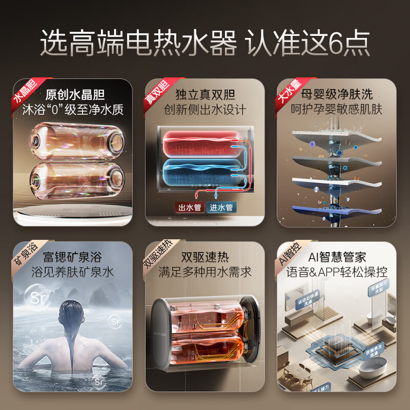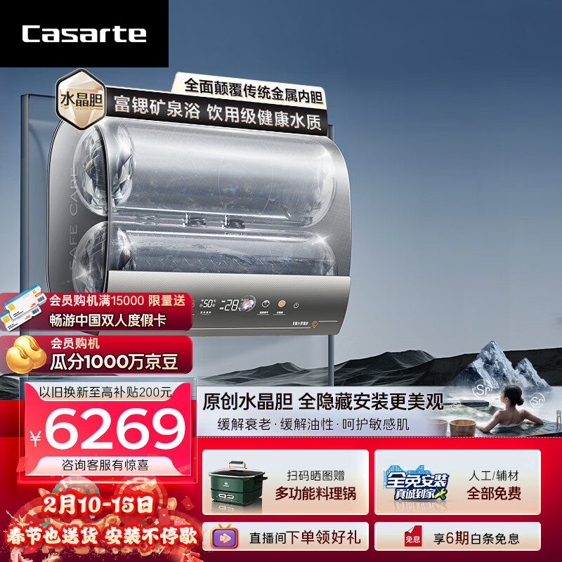 卡萨帝(Casarte)60升星云家用储水式超薄扁桶电热水器原创水晶双胆富锶汤浴变频速热一级能效CES60HD-PROM3CEK03U1价格:6599.00元!
