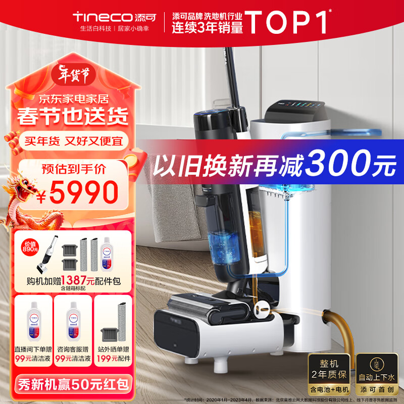 添可(TINECO)无线智能洗地机芙万Station多功能家用扫地机吸拖一体全自动补水排污自清洁手持吸尘洗地机价格:6190.00元!
