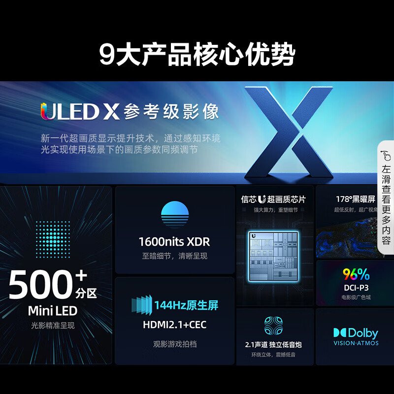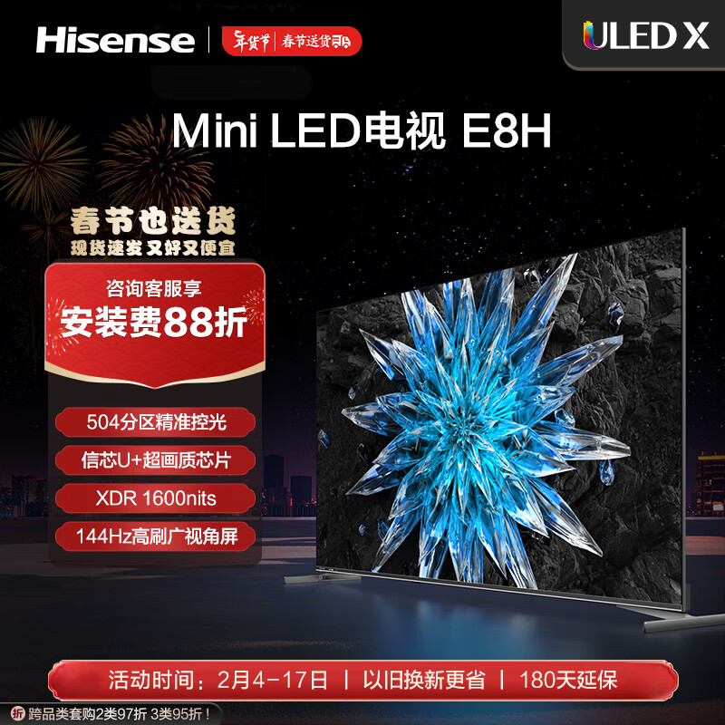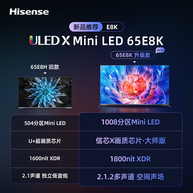 海信电视65E8H 65英寸 ULED X 504分区Mini LED 1600nits 144Hz 4K屏 液晶智能平板电视机以旧换新价格:4999.00元!