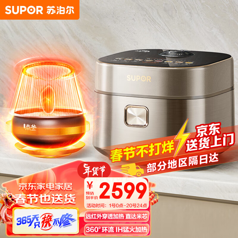 苏泊尔(SUPOR)电饭煲 电饭锅 4L家用多功能大容量远红外穿透加热360环流IH本釜内胆快速饭柴火饭 SF40HC87价格:2599.00元!