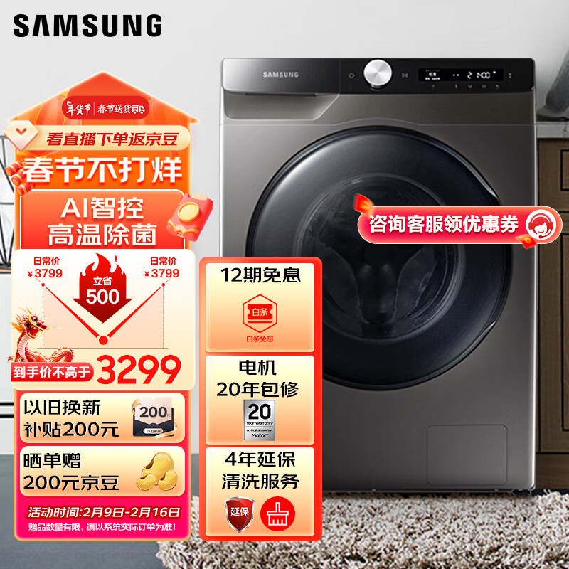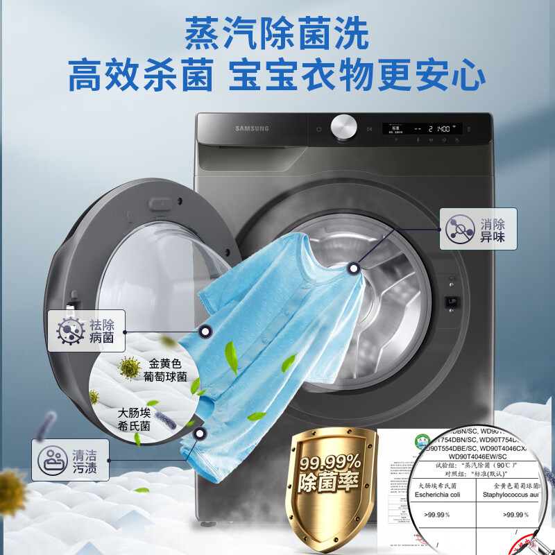 三星(SAMSUNG)10.5公斤全自动洗烘一体机大容量滚筒洗衣机蒸汽除菌泡泡净洗AI智控 10公斤洗衣机WD10T504DBX/SC价格:3299.00元!