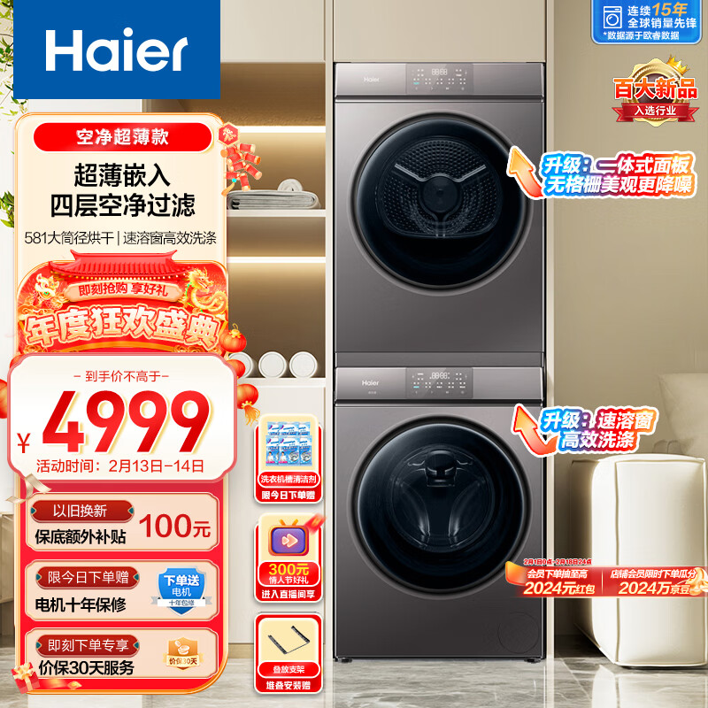 海尔(Haier)超薄全嵌洗烘套装 10Kg滚筒洗衣机全自动+热泵烘干机家用 速溶窗高效洗涤 K39系列 Mate36s套装价格:4999.00元!