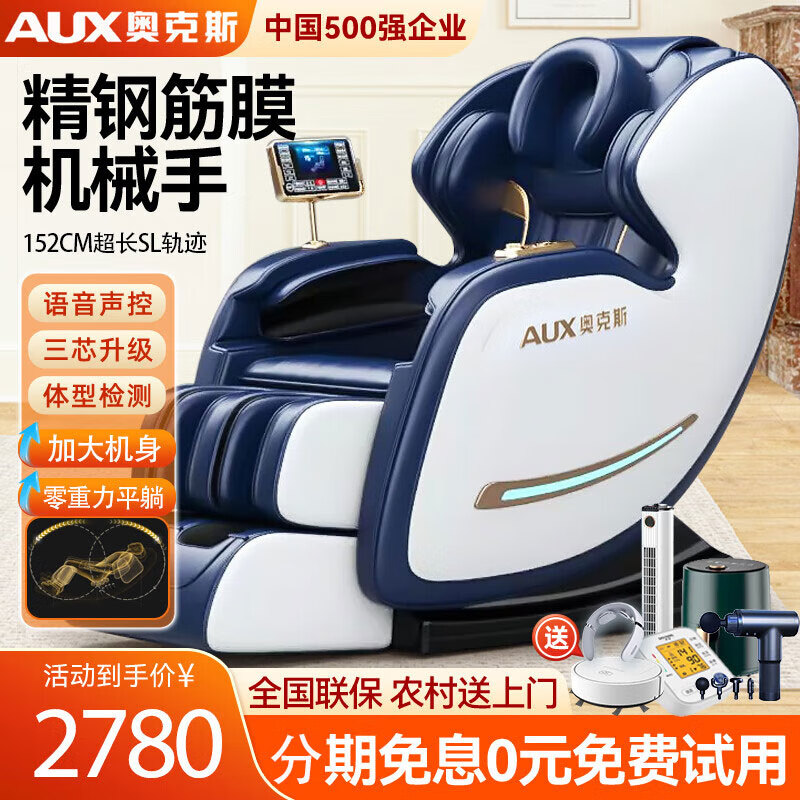 奥克斯按摩椅家用太空舱全自动全身零重力电动智能多功能机械手双SL导轨沙发生日礼物送爸爸妈妈长辈实用 豪华天蓝色【体型检测+智能语音+中控旋钮+语音】价格:2579.00元!
