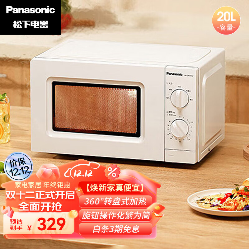 松下(Panasonic)NN-SM30NW 20升家用微波炉 360°转盘式加热 五档火力精准控温 旋钮操作化繁为简价格:325.00元!