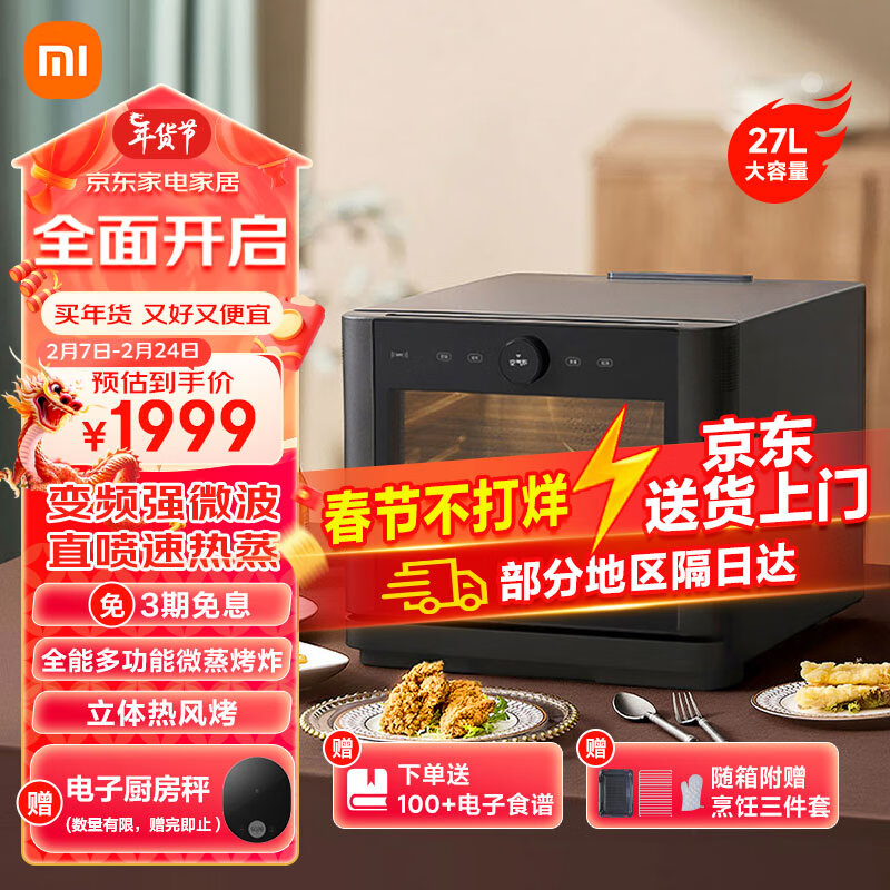 米家小米智能微蒸烤一体机家用变频水波炉微波炉蒸烤箱空气炸四合一27L大容量价格:1999.00元!