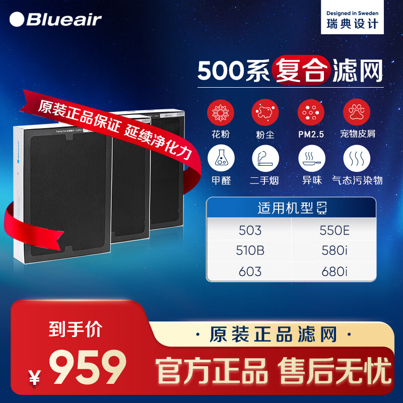 布鲁雅尔Blueair空气净化器过滤网滤芯 复合滤网适用503/510B/550E/580i【配件】价格:959.00元!