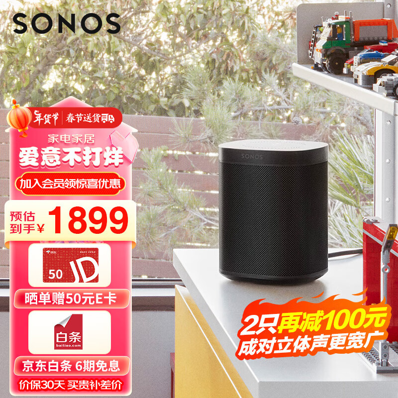 SonOS One SL 有源音箱 WIFI无线 多房间互联 环绕可组合 家庭影院 迷你音响 家用桌面客厅卧室书架 黑价格:1899.00元!