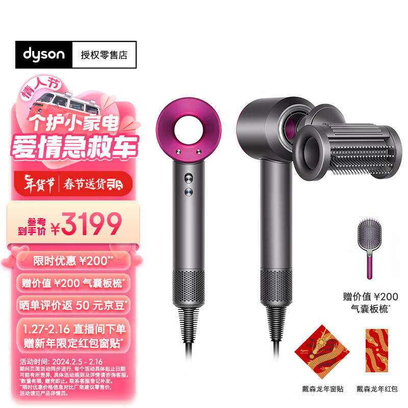 戴森(DYSON)HD15 新一代吹风机 Dyson Supersonic 电吹风 负离子 进口家用 礼物推荐 HD15 紫红色价格:3199.00元!
