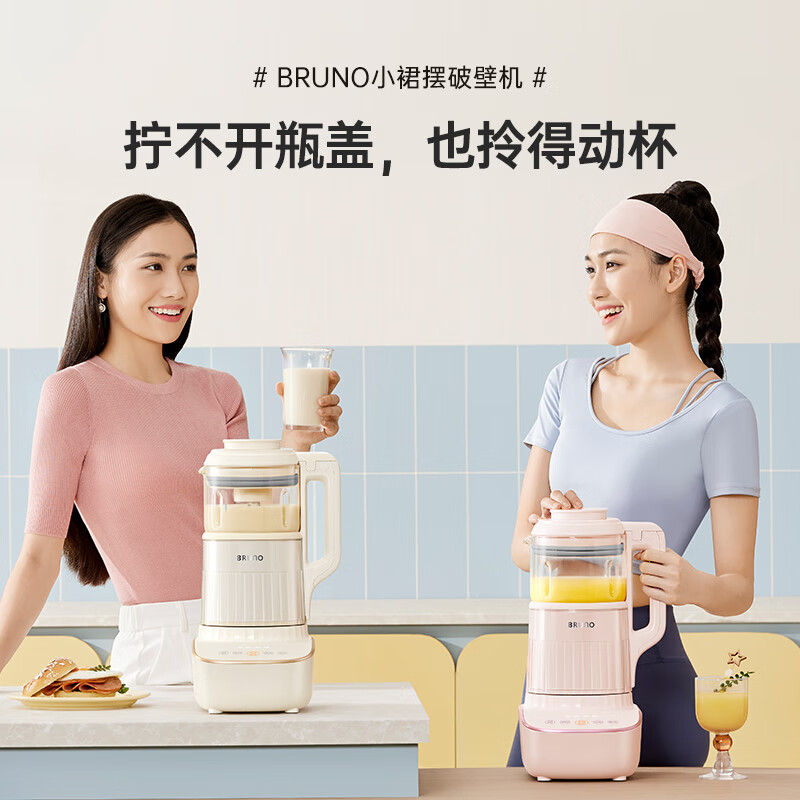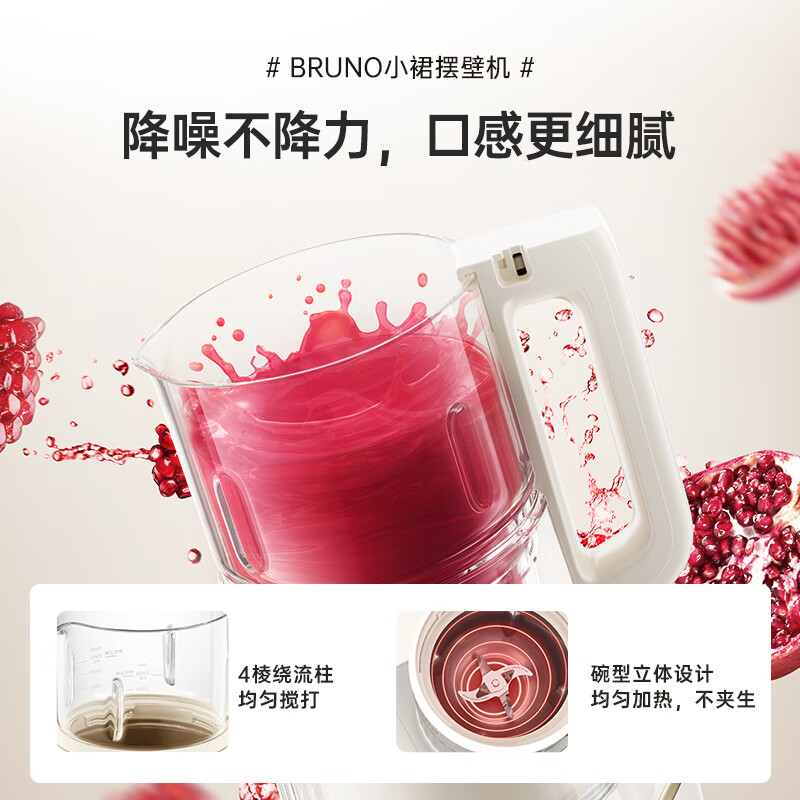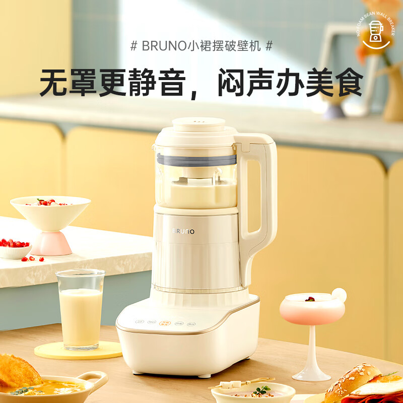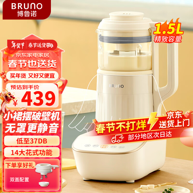BRUNO柔音小裙摆破壁机1.5L家用豆浆机小型容量加热免洗全自动榨汁搅拌静音辅食料理机象牙白年货送长辈价格:439.00元!