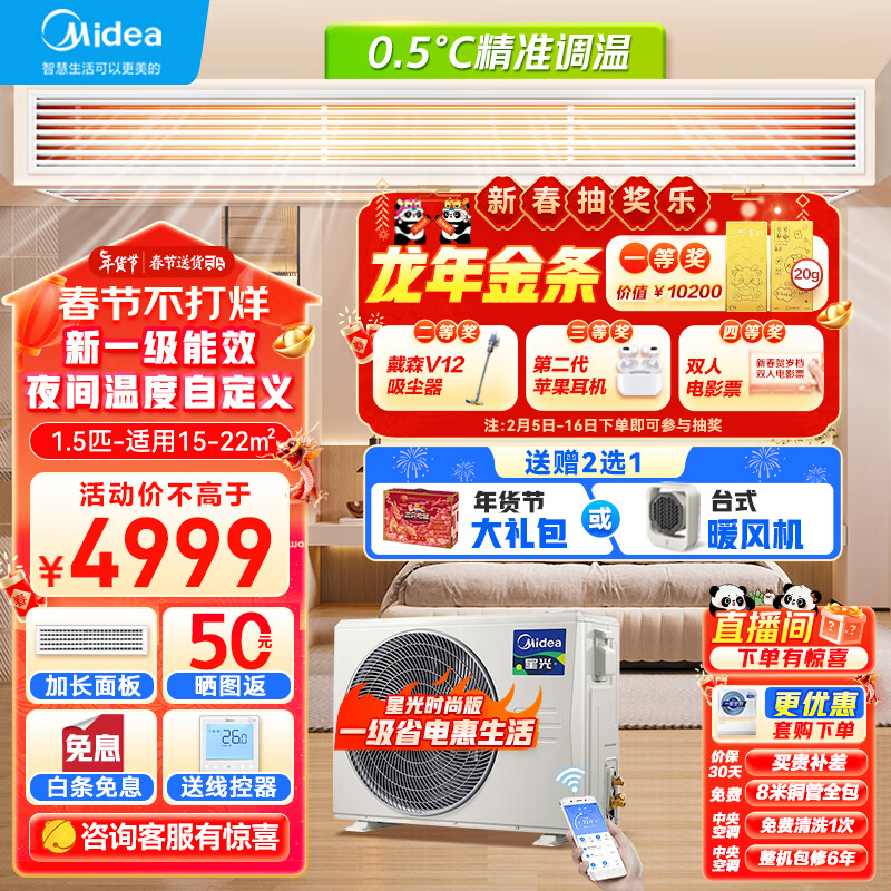 美的(Midea)中央空调风管机一拖一1.5匹第三代一级能效嵌入式空调星光时尚版KFR-35T2W/BDN1-XG(1)Ⅲ一价全包价格:5099.00元!