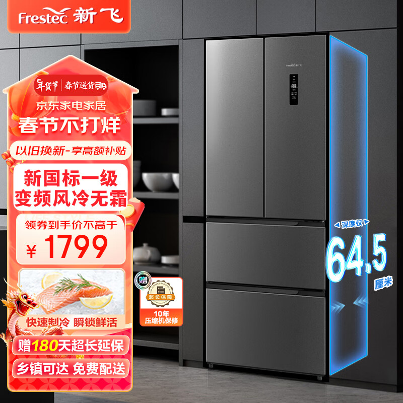 新飞(Frestec)310升超薄可嵌入法式变频四门多门多维风冷无霜一级能效家用电冰箱 BCD-310WK7CT价格:1899.00元!