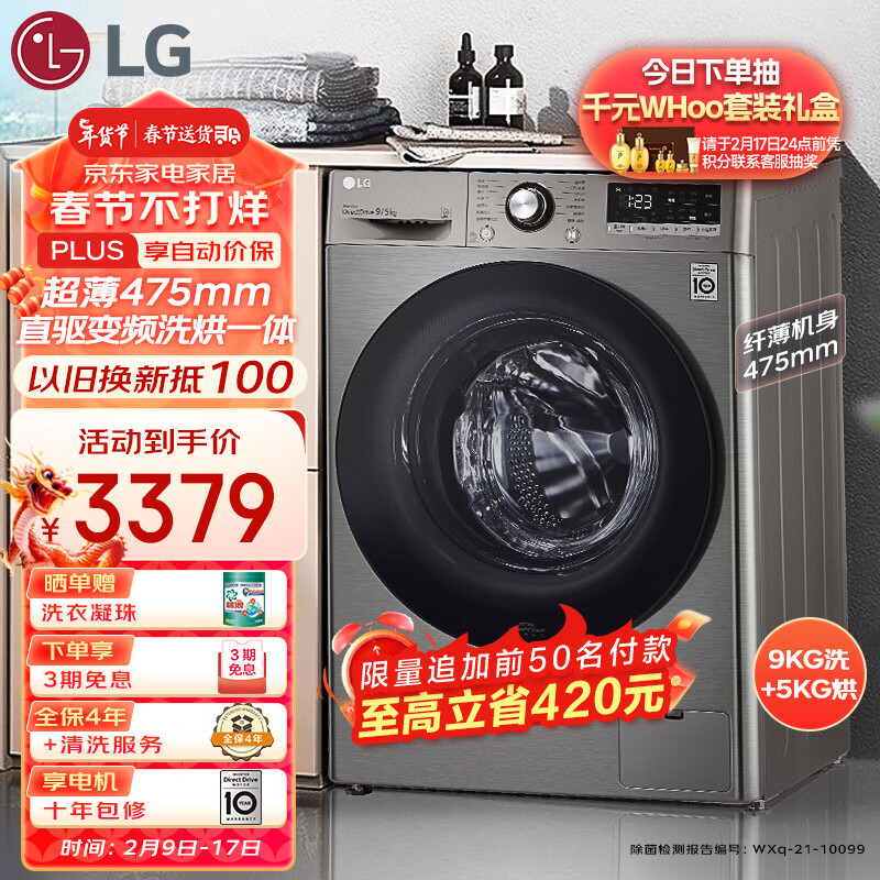 LG9KG超薄滚筒全自动洗衣机洗烘一体机小 475mm超薄机身 14分钟快洗 智能手洗 高温洗 银 FCY90M2P价格:3799.00元!