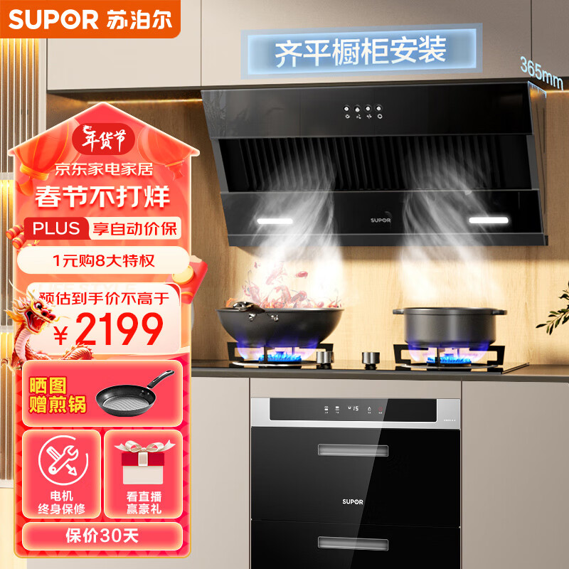 苏泊尔(SUPOR)抽油烟机燃气灶消毒柜套装 家用小尺寸大吸力 19立方侧吸式小户型烟灶消套装DJ13S+DB19天+508价格:2199.00元!
