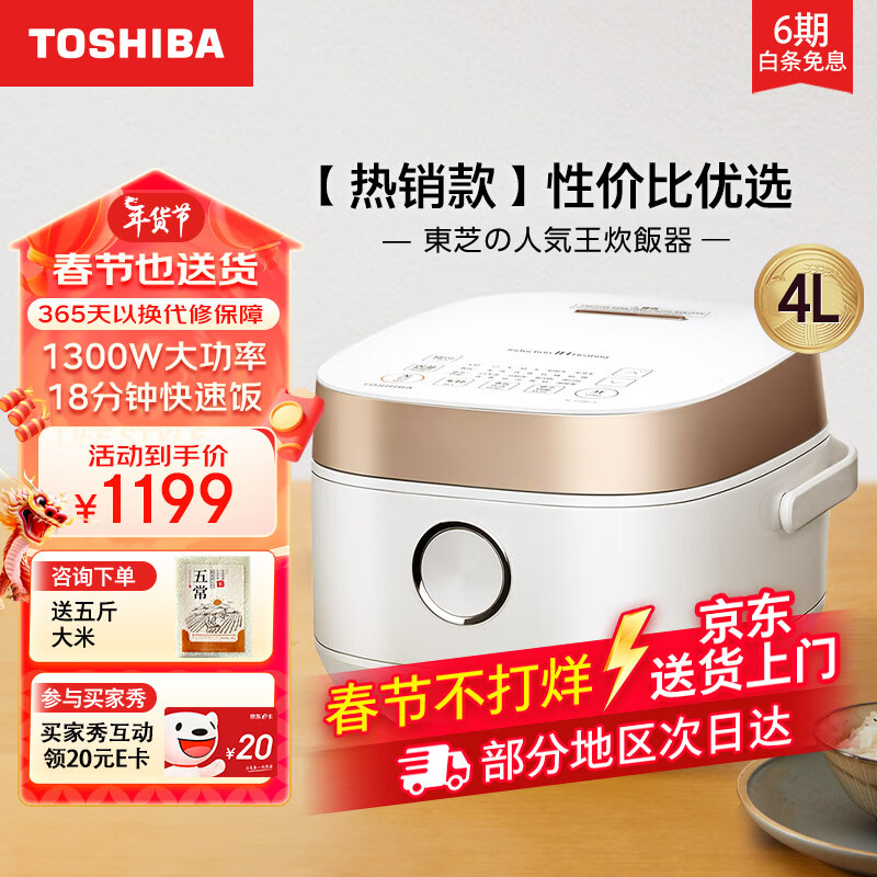 东芝(TOSHIBA)电饭煲家用4升发芽米多功能电饭锅 2-6人家用煮饭锅 进口不粘涂层鲜饭煲 白色4L【性价比优选】15HNC(W)价格:1499.00元!