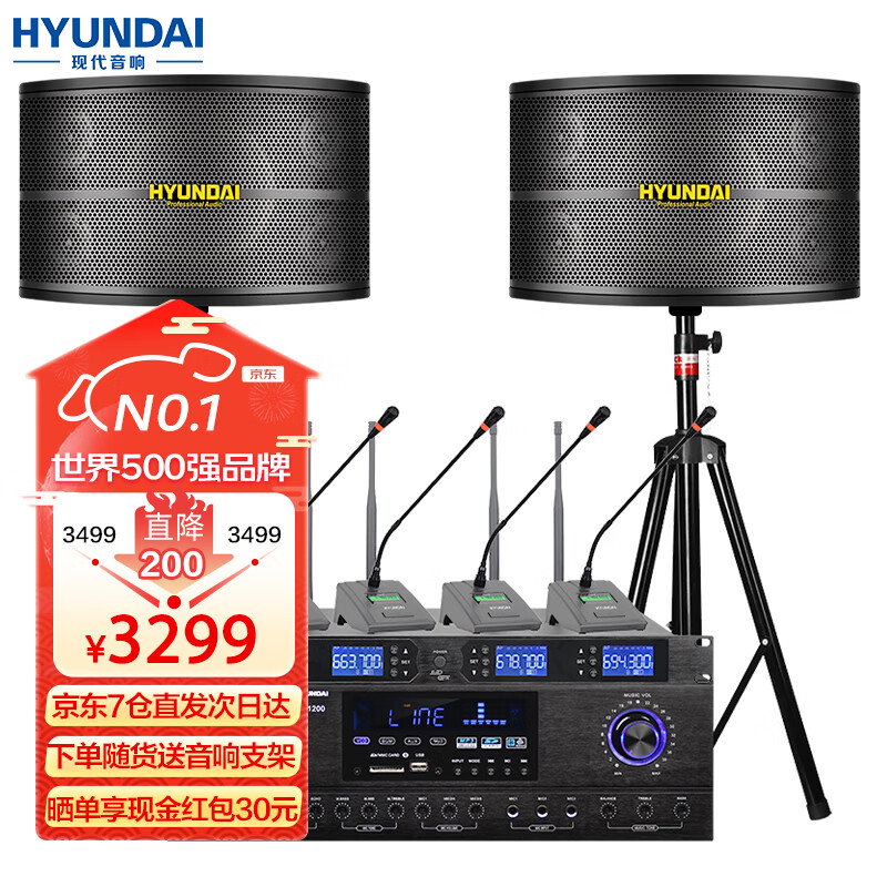 HYUNDAI现代专业会议室音响设备套装蓝牙功放培训教室舞蹈室家庭KTV背景音乐系统壁挂音箱 【两音响/四鹅颈】会议音响套装(50-120平)价格:3499.00元!