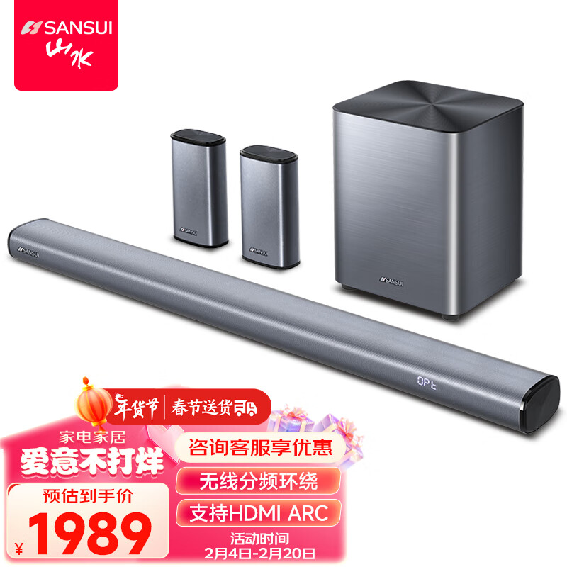 山水(SANSUI)DV-91K 回音壁 电视音响 家庭影院 5.1声道套装 无线3D环绕低音炮 家庭客厅蓝牙音箱价格:1989.00元!