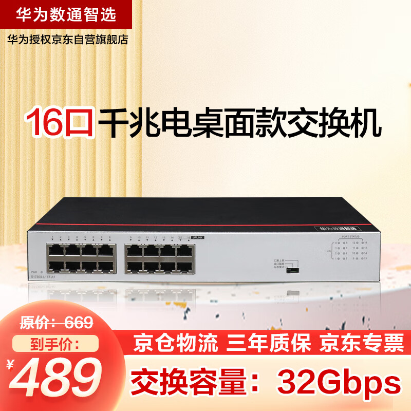 华为数通智选16口千兆交换机16口以太网电口网线分线器网络分流器集线器小型家用企业级 替代S1700-16G价格:489.00元!