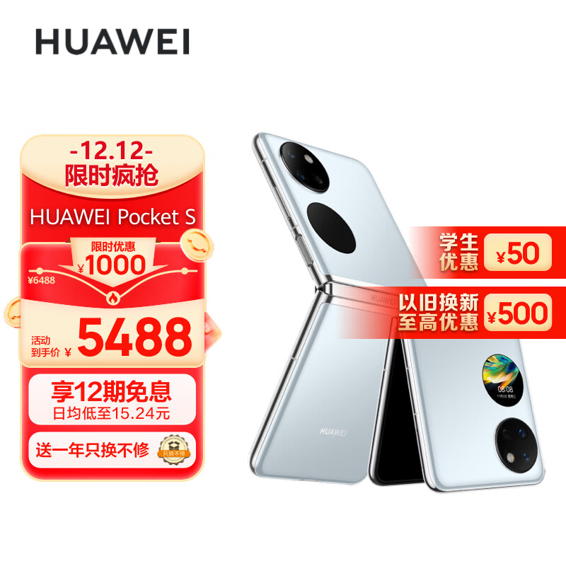 HUAWEI Pocket S 折叠屏手机 40万次折叠认证 256GB 冰晶蓝 华为小折叠价格:4988.00元!
