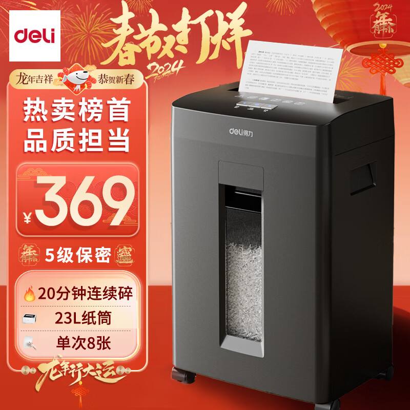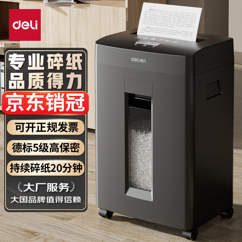 得力(deli)5级高保密商用办公碎纸机 文件粉碎机GA510( 连续碎纸20分钟 单次8张 23L)价格:369.00元!