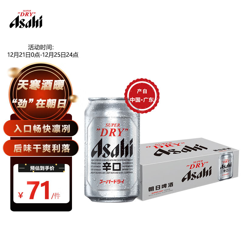 朝日Asahi朝日啤酒(超爽生)10.9度 330ml*15听 整箱装价格:81.00元!