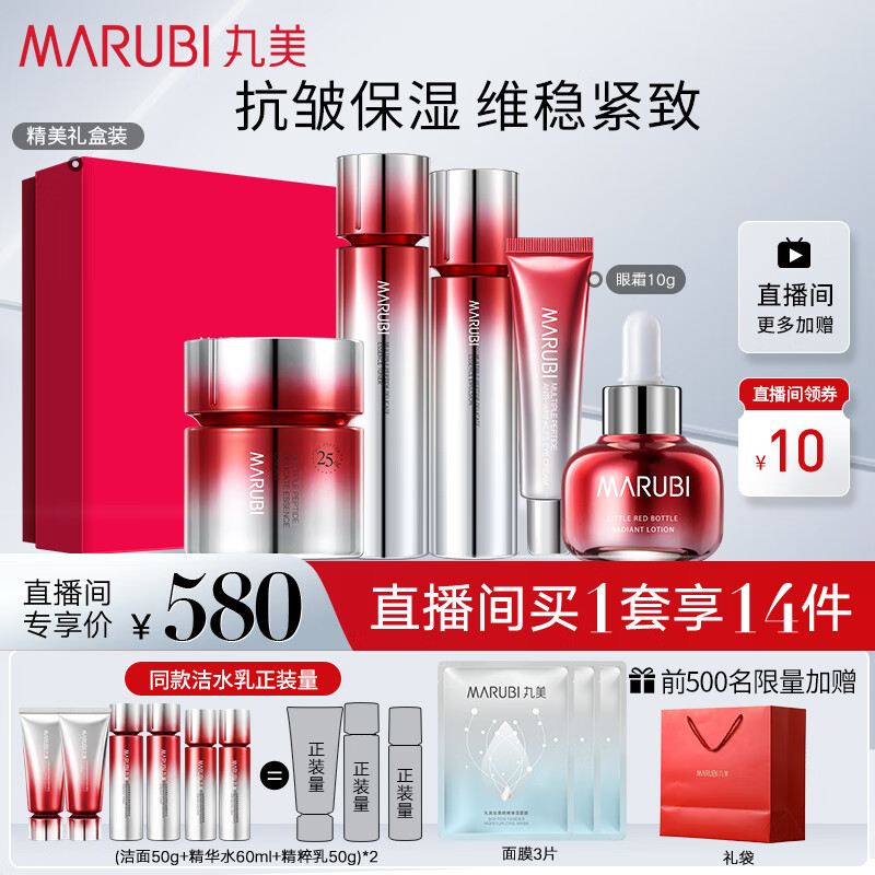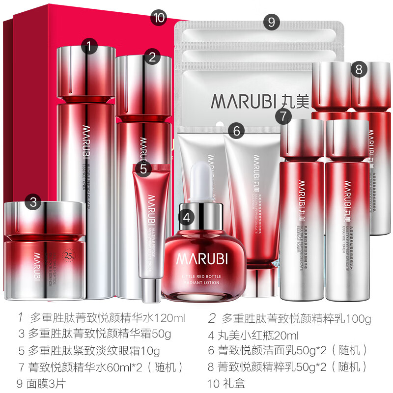 丸美套装 小红笔多重胜肽紧致水乳霜精华化妆护肤品礼盒女 紧致抗皱价格:590.00元!