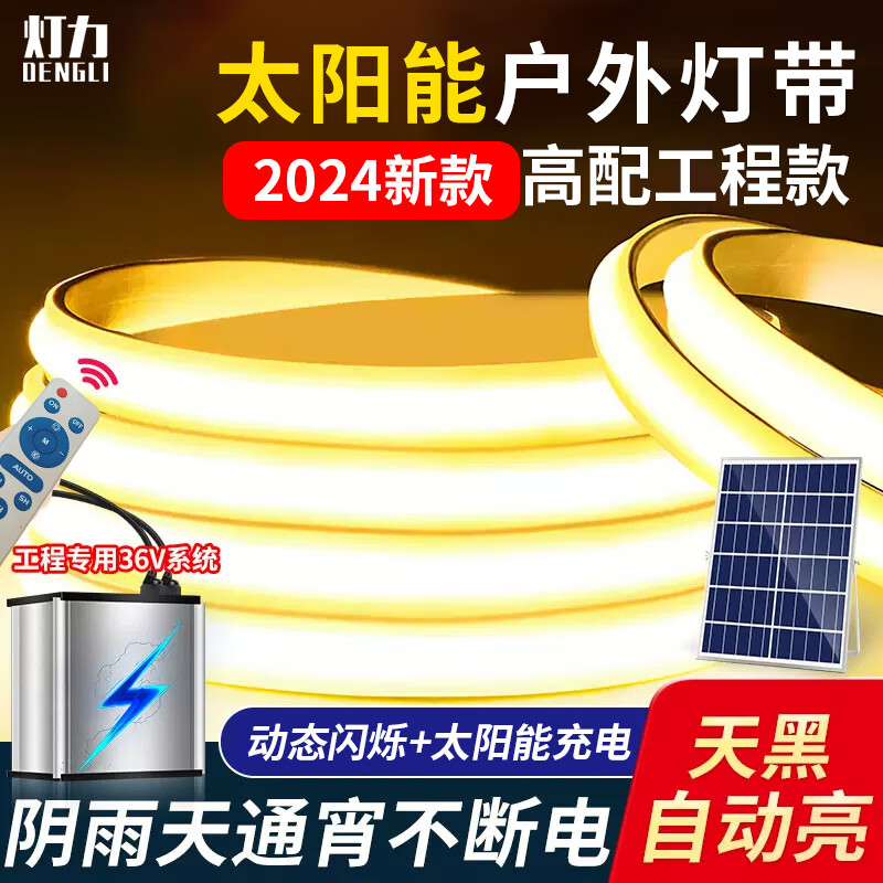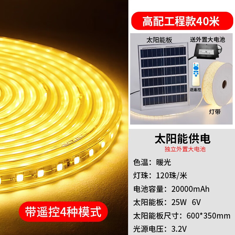 灯力太阳能灯带户外防水灯串庭院装饰灯家用装饰软条灯亮化露营营地灯 高配工程40米暖光+动态闪烁+遥控价格:799.00元!