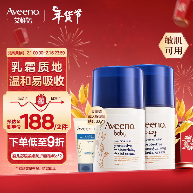 艾惟诺(Aveeno)儿童面霜长效保湿滋润婴儿面霜秋冬宝宝面霜燕麦小喷泉48g*2价格:209.00元!