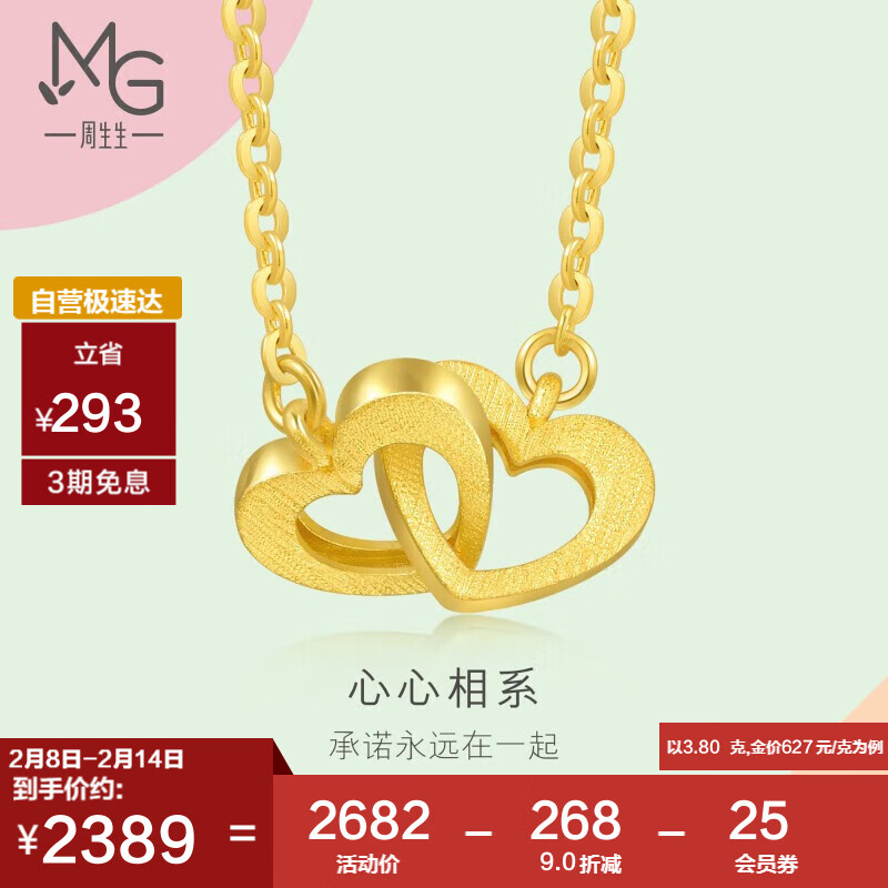 周生生新年礼物黄金项链心相连足金爱心吊坠套链92993N计价47厘米 3.8克价格:2960.00元!