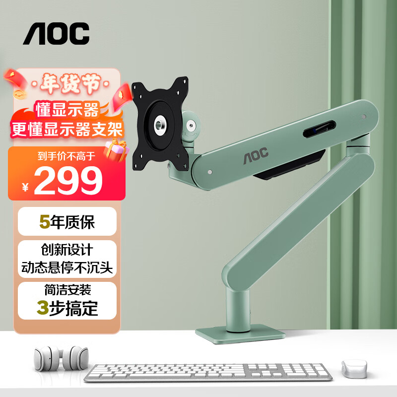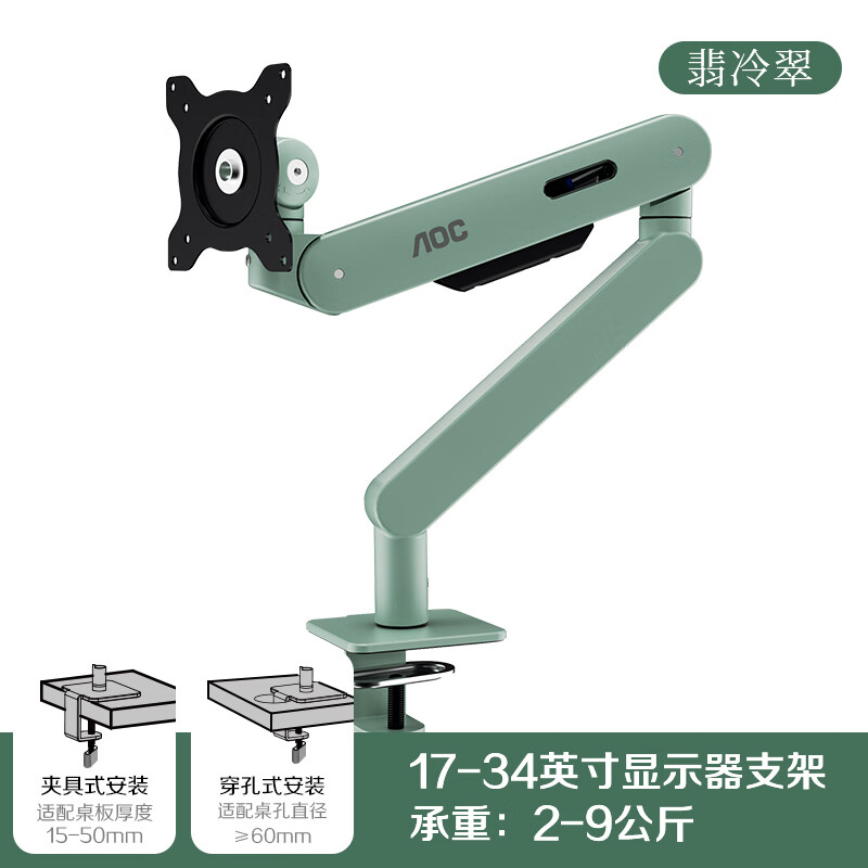 AOC 显示器支架 桌面升降显示器支架臂 旋转电脑架 屏幕支架 居家办公电脑支架 AM400PLUS(翡冷翠)价格:329.00元!