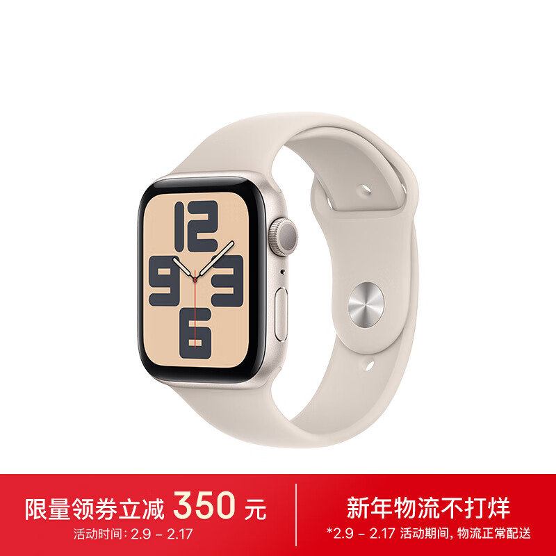 Apple/苹果 Watch SE 2023款智能手表GPS款44毫米星光色铝金属表壳星光色运动型表带M/L MRE53CH/A价格:2199.00元!
