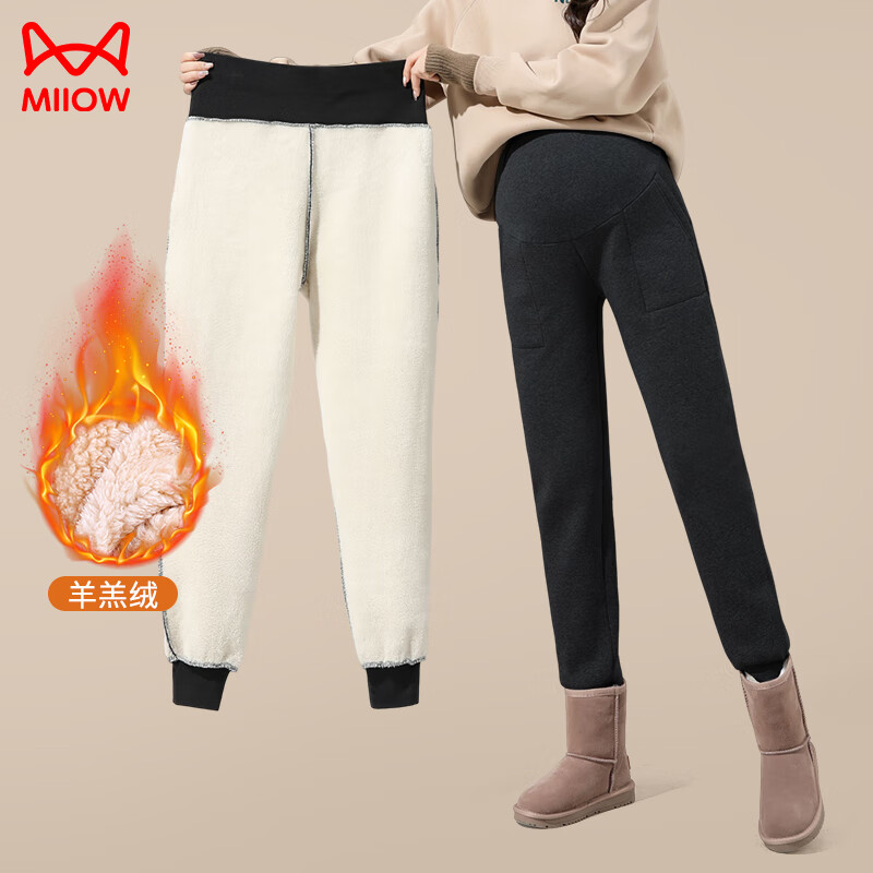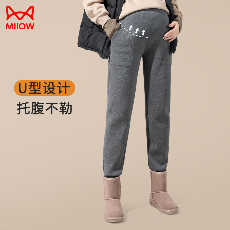 猫人(MiiOW)孕妇裤打底裤秋冬加绒加厚外穿运动裤孕妇装冬装MR1079黑色XXL价格:199.00元!